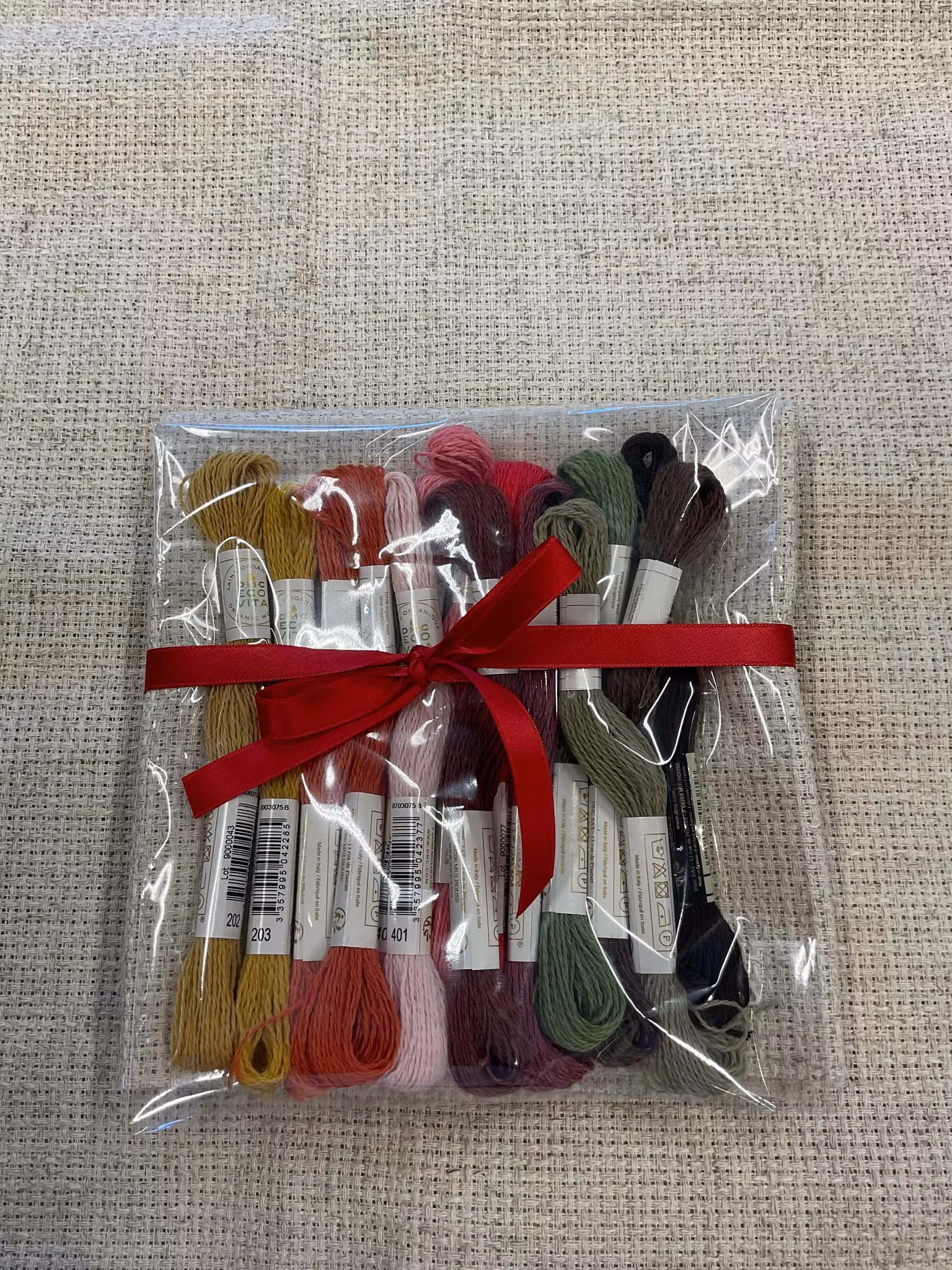 Du får med 35x70 cm Aida stoff og 14 dk DMC Ullgarn. Nok til å brodere til veskaMønster og stoff er Ikke inkludert i prisen og kan bestilles i tillegg