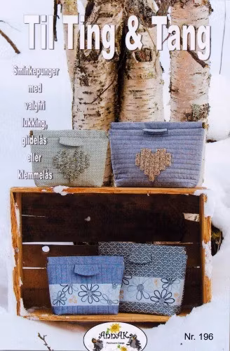 Mønster til Sminkepunger i to str. liten 15x20 cm og stor 18x25,5 cm Stitchery blomster eller rufsehjerte. Pungene syes helt ferdig før en bestemmer om en det skal være glidelås eller klemmelåslukking