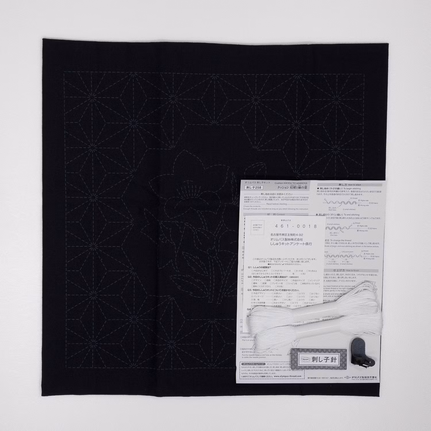 Sashiko kit- pute med mønster Kikyo and Asa-no-Ha ,Navy NOK 559,00 Sashiko kit- pute med tradisjonell Sashiko stoff ferdig påtrykket. 100% bomull, garn, nål og fingerbøl På Lager Legg i handlekurv Lagerbalanse: 4 Artikkelnummer: OLY-SK223 Leverandør: Olympus Del Informasjon Sashiko kit- pute med tradisjonell Sashiko stoff ferdig påtrykket. 100% bomull, garn, nål og fingerbøl