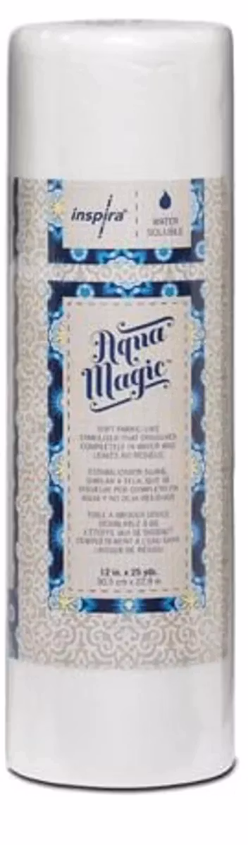 INSPIRA® Aqua Magic er en myk stofflignende stabilisator som løses helt opp i vann. Den gir et ideelt grunnlag for frittstående applikasjoner, kniplinger og snittdesign under broderiprosessen. Fordi INSPIRA® Aqua Magic stabilisator skylles helt bort, vil den gjøre prosjektet ditt mykt og smidig, ikke stivt