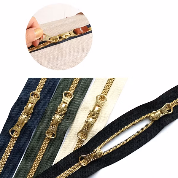 Glidelås ikke delbare med to glidere- Gullfarget . 50 cm, finnes i 4 forskjeilige farger. Velg mellom sort,hvit , marine og grønn Laget av resin.